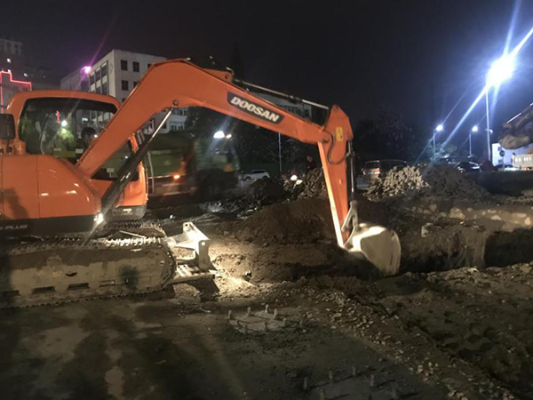 為早日還路于民,市政公司增加人力物力投入,項(xiàng)目處嚴(yán)密組織,倒排工期,實(shí)行三班倒,晝夜奮戰(zhàn),全力以赴推進(jìn)施工進(jìn)度,確保通車目標(biāo)實(shí)現(xiàn)。